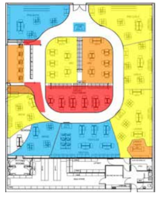 Customers’ behavioral responses were also coded by blind raters (who were not responsible for the rest of the data analysis) and matched post marking with both the biometric and eye-tracking data. Heat maps of the customers’ visual engagement with specific areas of the store were also produced (figure 3), and foot-traffic heat maps were also used (figure 4). For store zones in which customers spent significant amounts of time, GSR data in conjunction with eye-tracking data was used to compute emotional engagement levels and estimate cognitive load metrics.