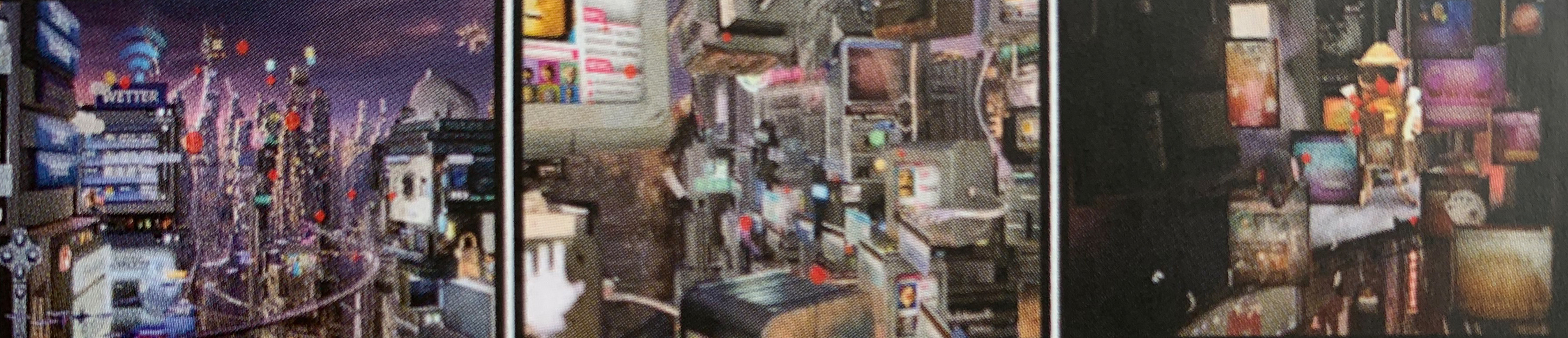 In the first 20 seconds of the long version, a suggestive atmosphere was used to illustrate the dangers of the internet. In accordance with this intention, the atmosphere of this part can be characterized as dark, sleazy, cluttered, loud, hectic, confusing, dubious and futuristic.