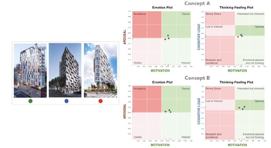 Even though the concepts evoked an extremely similar performance in cognitive and emotional responses and we concluded that any of the concepts were as good, we found out that concepts had a significant effect on architecture preference. We also found out that any concept was able to encourage the subjects to be willing to pay up to 10% more than the average price in the market for the real estate product offered. Interestingly, a careful step-wise debriefing interview after the study showed that subjects were willing to pay a higher price than average if the project they saw was going to be built in a way that was as similar as possible to the concept video shown.
